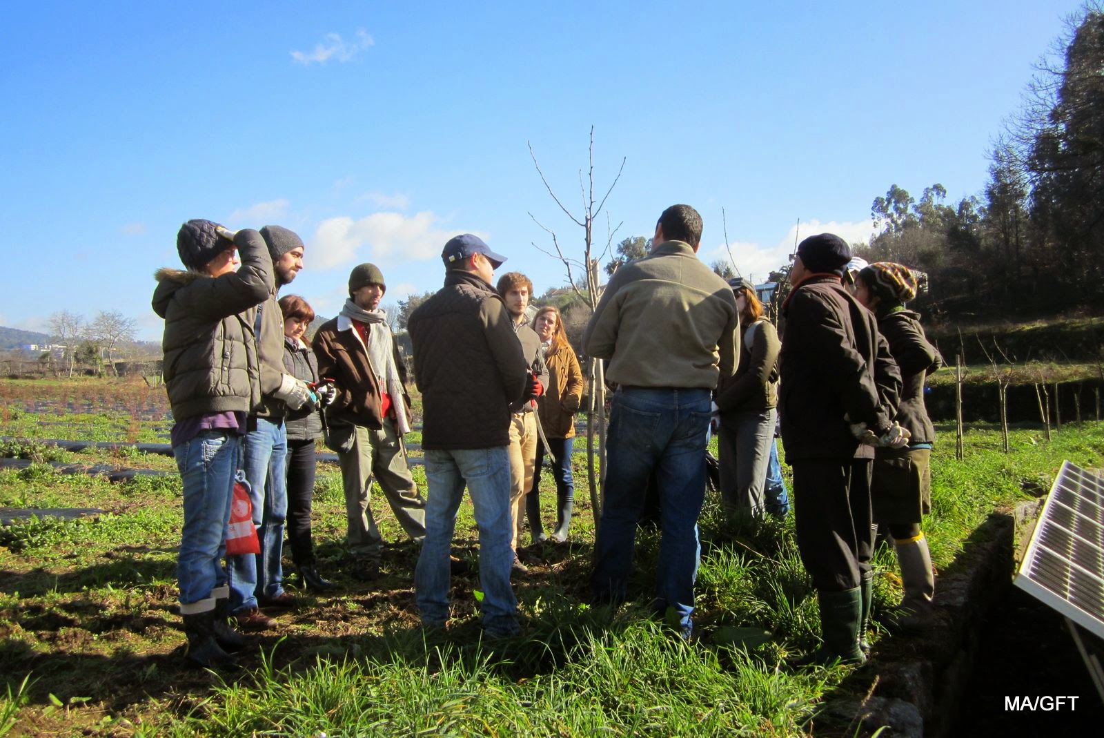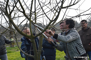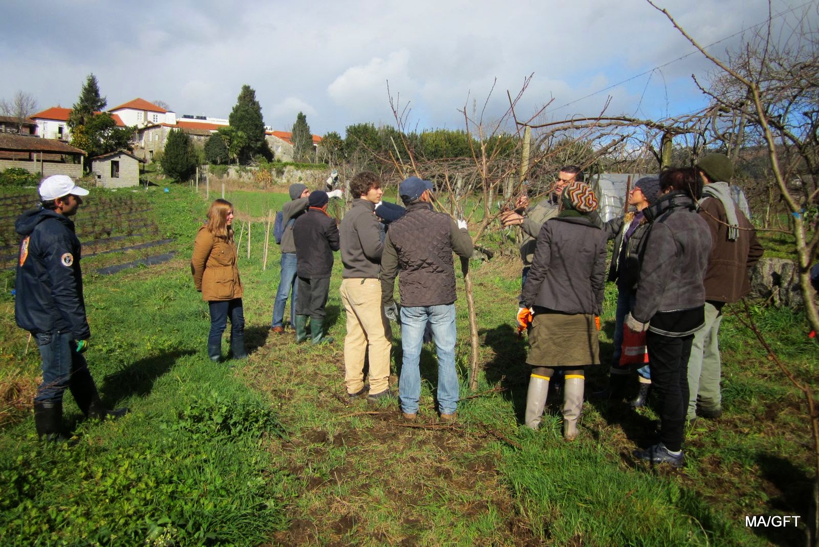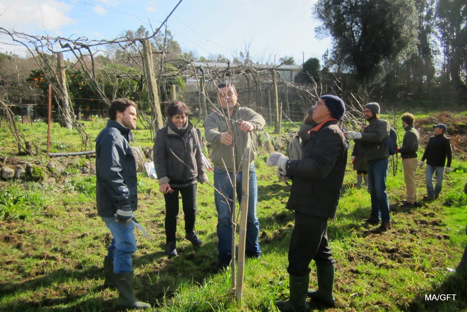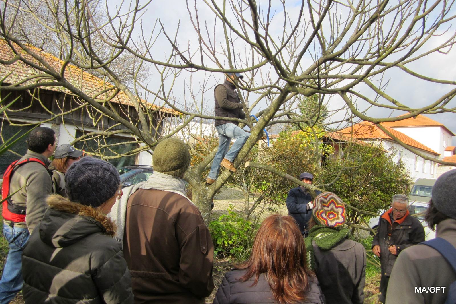 Com alguns aguaceiros pelo meio, ventania à mistura, e muito boa disposição, lá se conseguiu aprender as bases da poda de árvores de fruto: macieiras, pereiras, ameixoeiras, pessegueiros, diospireiros e quivis.