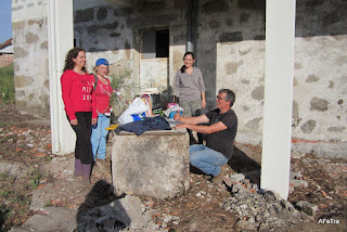 A Bruna e o Nuno dedicaram-se a trabalhos de escavação arqueológica, limpando uma cova existente no terreno e preparando-a para um futuro charco.
