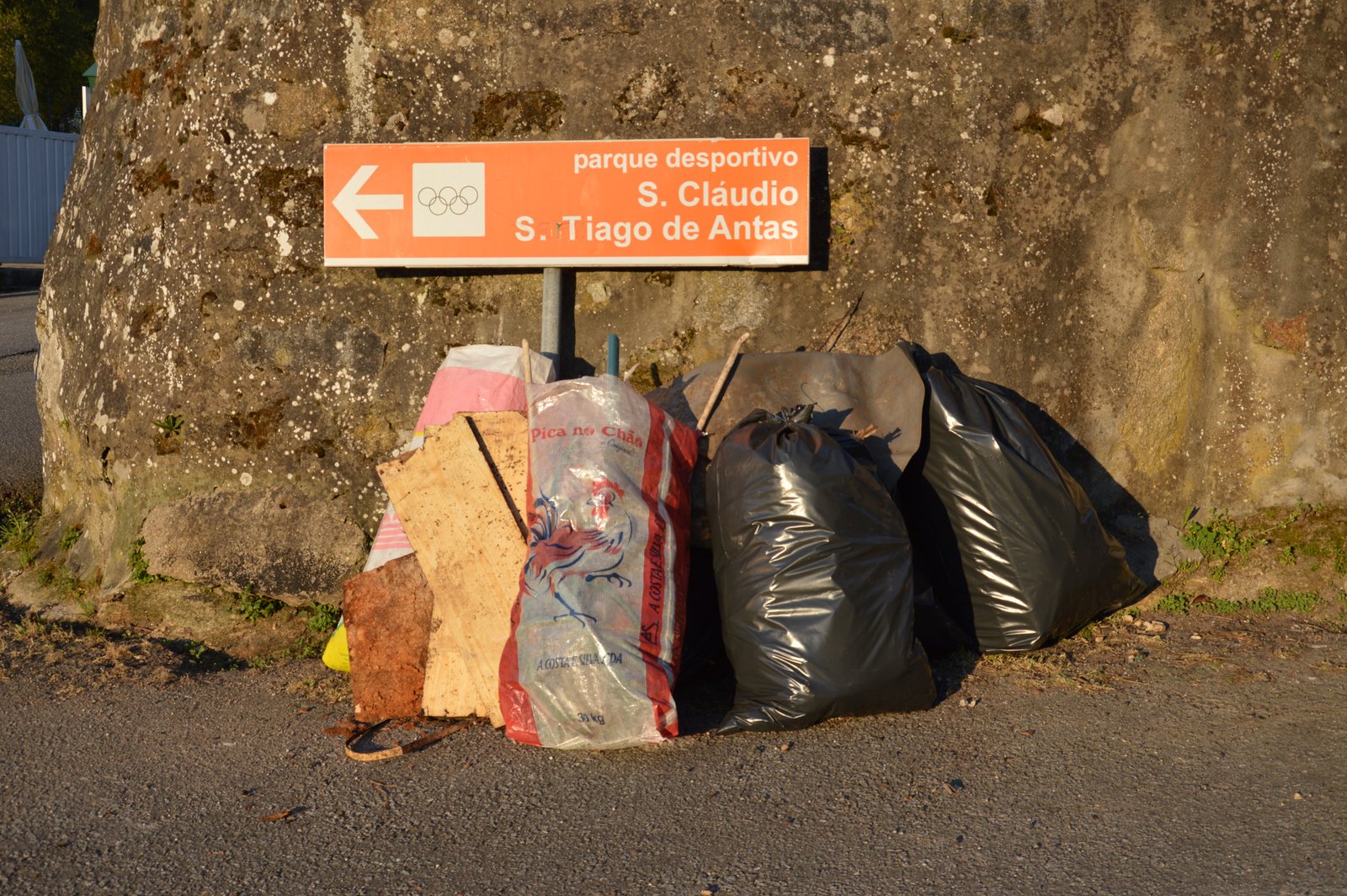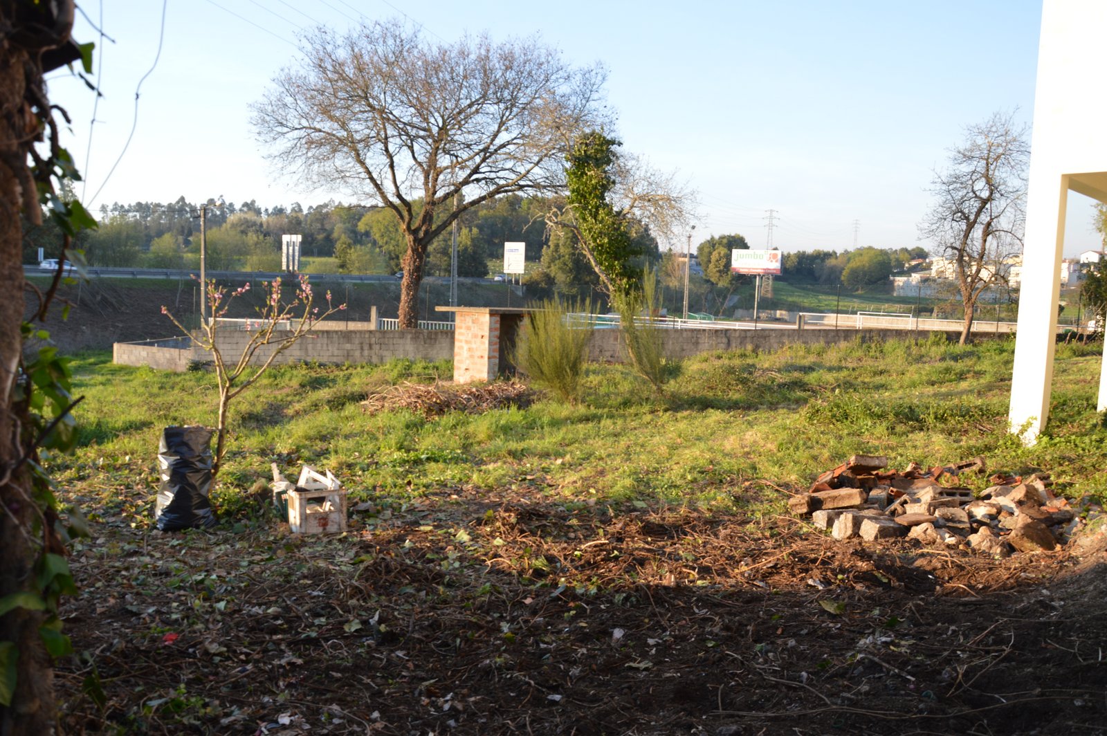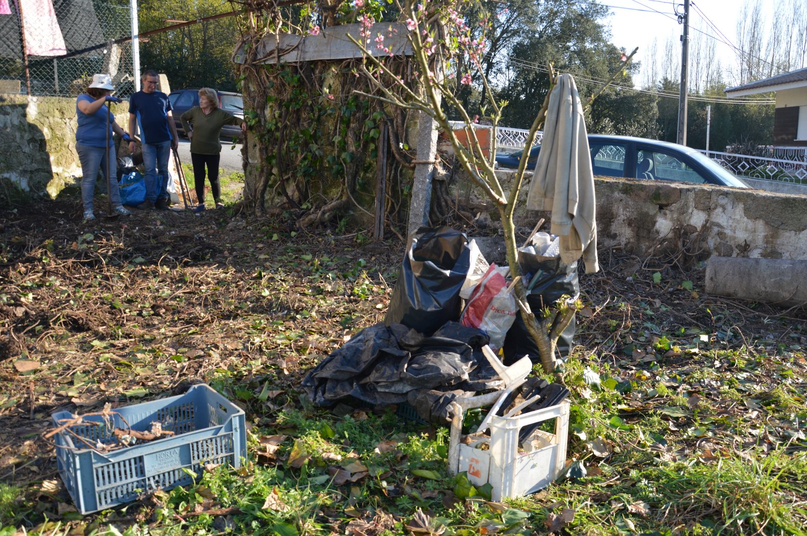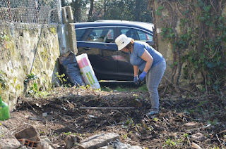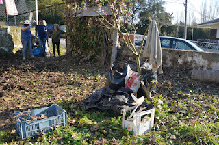Ao longo do tempo, a zona da entrada e a parte junto ao muro foi transformada numa lixeira, que estava bem disfarçada debaixo da vegetação e mesmo de terra. Bocados de madeira, de contraplacado, tijolos, pedras, vidros, plásticos de toda a natureza: redes, mangueiras, lonas, embalagens, ondulados de coberturas, ... parecia mesmo o Limpar Portugal!