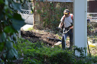 Fomos 4 a começar de manhã (Jorge, Rosário, Paulo e Manuela), com a limpeza exterior em frente à edificação,